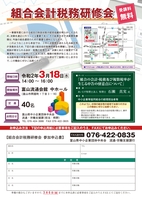 このようなことから本会では、3月に決算期を迎えられる組合等が多数あるため、下記の通り組合会計税務研修会を開催し、日頃よく相談が寄せられる会計・税務の処理方法、決算にあたり留意すべき事項等について説明いたします。また、複数の税率が生じることとなる当該年度の申告の留意点等についても併せてご説明いたしますので、この機会にぜひご出席ください。