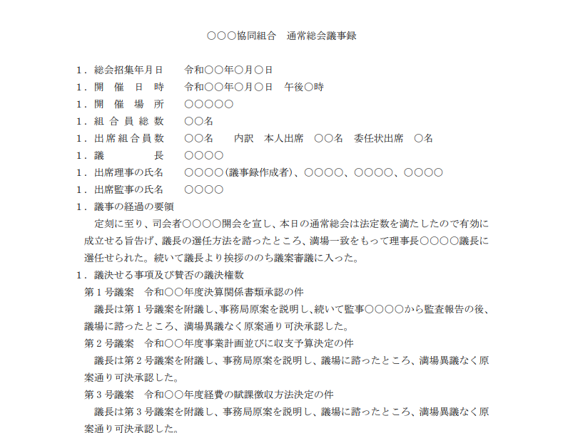 許認可届出様式[その他] トップページ 組合制度の案内 許認可届出様式 許認可届出様式[その他] 総会議事録(役員改選のない場合) 組合制度のご案内 組合制度の概要 組合庶務一覧 許認可届出様式 組合運営Q&A 県内の組合事例