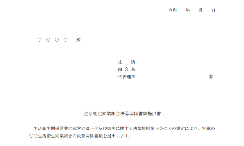 許認可届出様式[届出/決算関係書類提出書] トップページ 組合制度の案内 許認可届出様式 許認可届出様式[届出/決算関係書類提出書] 生活衛生同業組合 組合制度のご案内 組合制度の概要 組合庶務一覧 許認可届出様式 組合運営Q&A 県内の組合事例