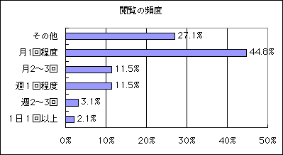 閲覧の頻度として最も多かったのは、「月1回程度」44.8%、次に「一度見たことがある」、「調査記入にあたり初めて見た」などの回答による「その他」27.1%という結果となった。