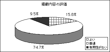 「普通」と回答した組合が最も多く74.7%、「よい」15.8%、「有用性がない」9.5%という結果となった。 「よい」と回答した理由について、「要点が簡潔」 「実務上参考になる点が多い」との意見があった。「普通」 「有用性がない」と回答した理由について、「リアルタイムな情報が少ない」 「欲しい情報がタイムリーにない」などの意見があった。