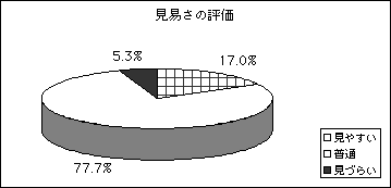 見易さについて、「普通」77.7%、「見やすい」17.0%、「見づらい」5.3%という結果となった。
