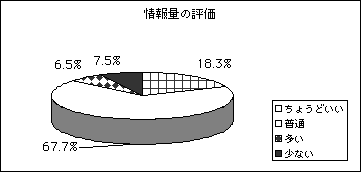 情報量について「普通」と回答した組合が最も多く67.7%、「ちょうどいい」18.3%、「少ない」7.5%、「多い」6.5%という結果となった。