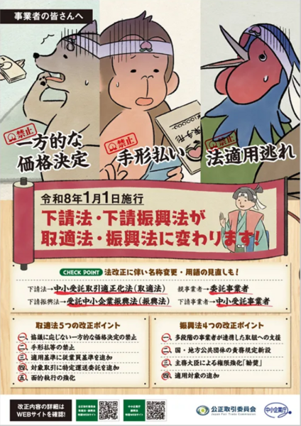 取適法(中小受託取引適正化法)が施行されました(公正取引委員会)